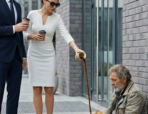As the couple approached, their attention shifted toward the man. What followed was a moment that stood in contrast to the otherwise calm environment. Instead of continuing on their way, they paused. In a gesture that may have seemed insignificant to them but carried real impact, coffee was poured in his direction. The action was brief, but it created an uncomfortable and disheartening situation.