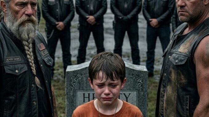 The older biker stepped protectively in front of the boy, making it clear that the child would not face the tension by himself. The rest of the group, once gathered only to mourn, now stood united for another reason. They understood that respect for the woman’s memory also meant taking her warning seriously. No shouting was needed. No dramatic confrontation was required. The silence itself carried the truth: something important had been hidden, and the people at that grave now intended to uncover it the right way.