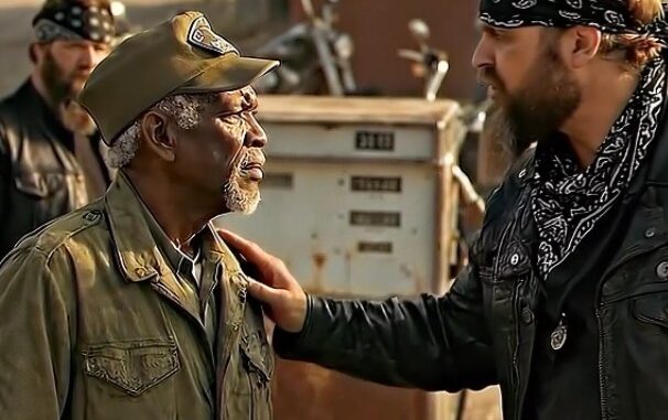 At a small fuel station on the edge of town, the afternoon had been moving along like any other. Cars came and went, engines hummed, and people stopped only long enough to fill their tanks before heading back onto the road. Near one of the pumps stood an older Black veteran, dressed in a worn jacket and a faded cap. He moved slowly, with the careful steps of someone who had seen many hard years, but his posture still carried quiet dignity.