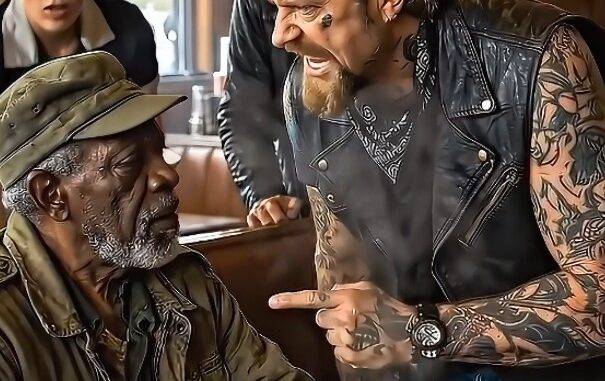 The diner was quiet that afternoon, the kind of quiet that feels almost too still. A few customers sat scattered across worn booths, sipping coffee and keeping to themselves. Near the window, an elderly man sat alone, holding a simple cup with both hands. His clothes were worn, his jeans slightly torn, and his jacket carried the marks of time. A faded military cap rested low on his head.