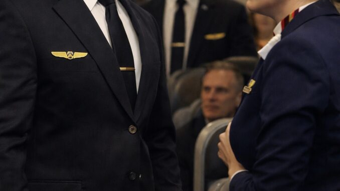 Moments later, the atmosphere shifted. The cockpit door opened, and the captain stepped into the aisle, walking toward the scene with a composed presence.